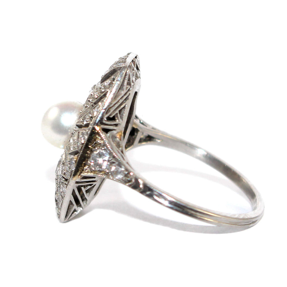 Art Deco Pearl & Diamond Tablet Ring c.1930