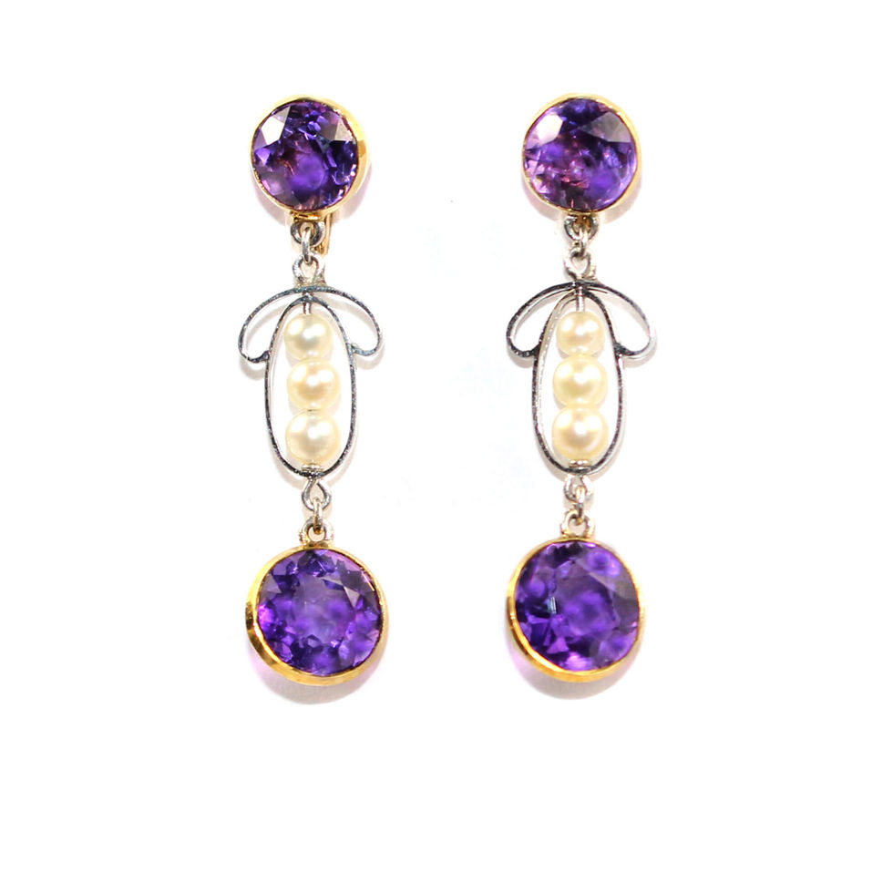 Art Nouveau Amethyst & Pearl Earrings - c.1910
