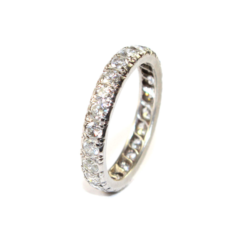 This elegant ring has 24 diamonds in a spitch setting within a slightly domed band. The ring has a beautiful fluted design setting to the reverse allowing light into the back of the diamonds.
