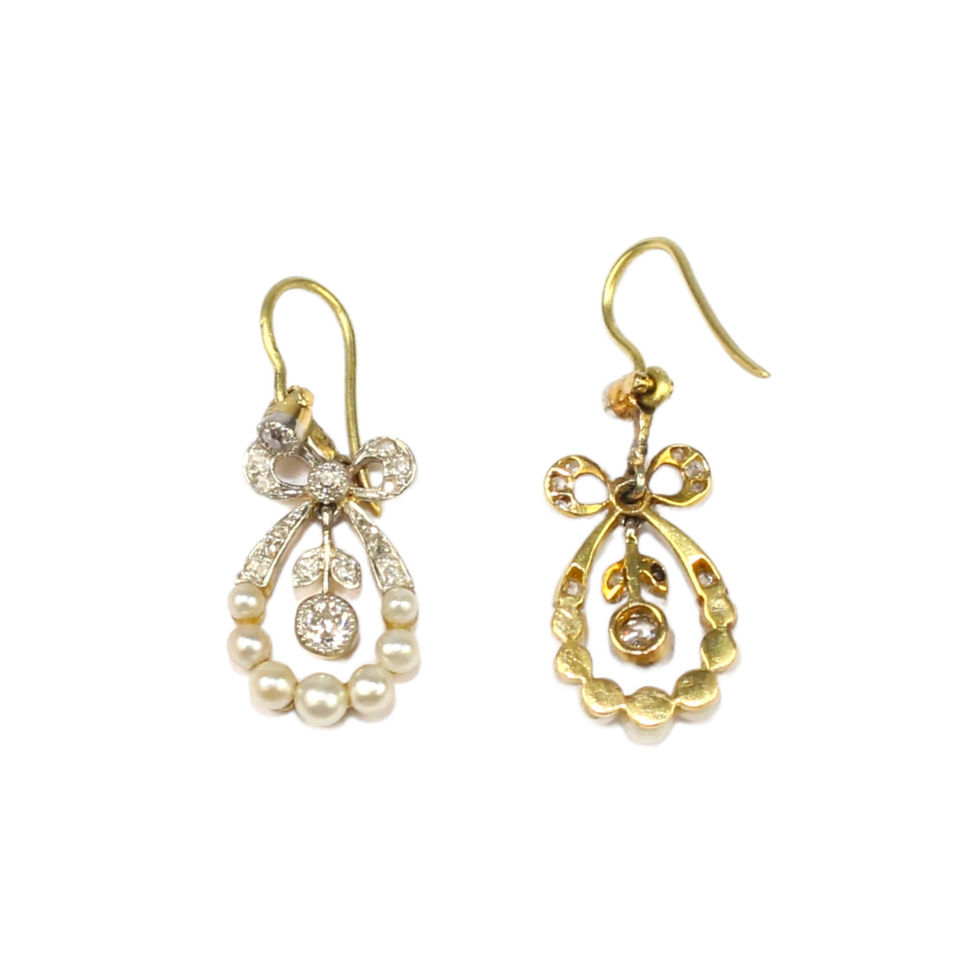 Edwardian Diamond & Pearl Bow Earrings c.1915
