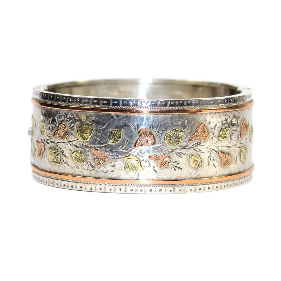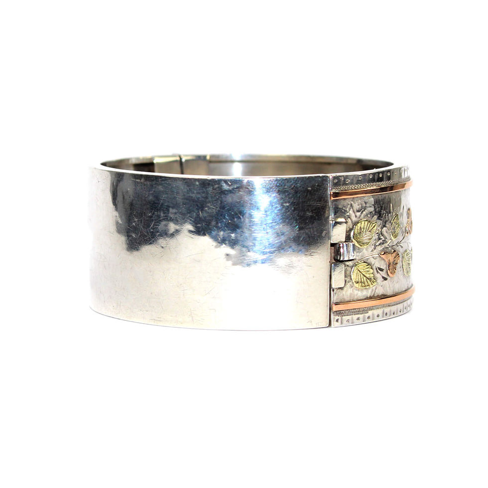 Victorian Silver & Gold Wide Foliate Bangle c.1880
